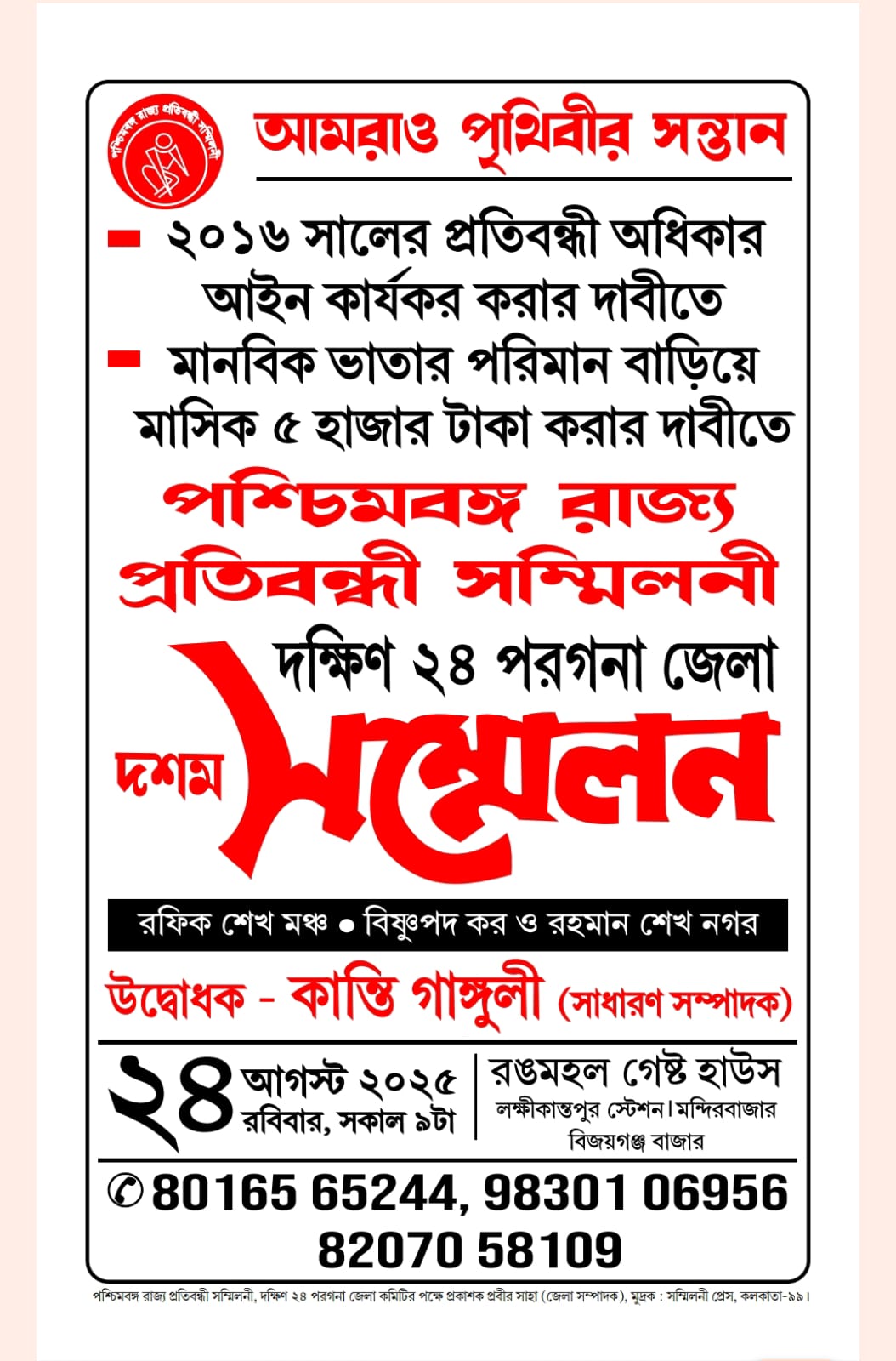 Before PRPS, Dakshin Sahartali Pratibandhi Sammilani (DSPS) an organization for the disabled was formed. However, when the need for a larger forum to represent the entire disabled community in the State arose, PRPS was established in a Convention on Rights for Disabled in Kolkata in 1986.